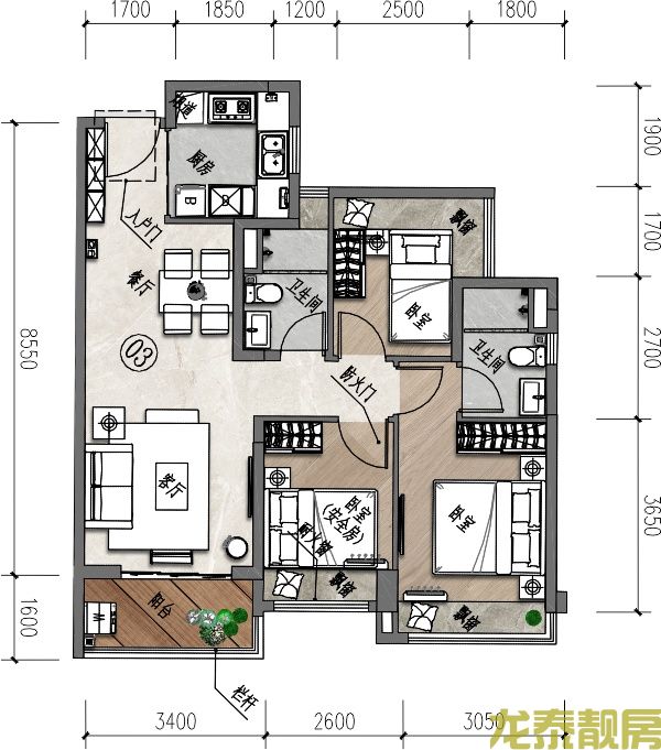 88m²/ 三房两厅一卫,精装