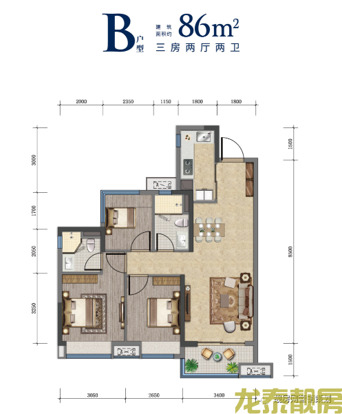 绿化率30%。主力户型为68平-95平2居-3居。
